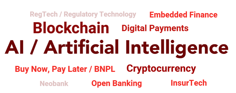• Other terms/topics covered included: Digital payments (6%), Buy Now, Pay Later (BNPL) (3%), Open banking (2%), Embedded finance (2%), InsurTech (2%), RegTech / regulatory technology (1%) and Neobank (1%).